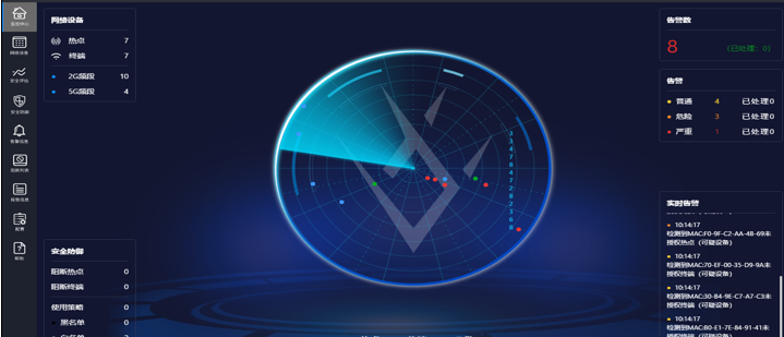 1、實(shí)時(shí)監(jiān)控功能:對(duì)當(dāng)前無線空域的全部無線設(shè)備和無線通信行為進(jìn)行實(shí)時(shí)監(jiān)控。