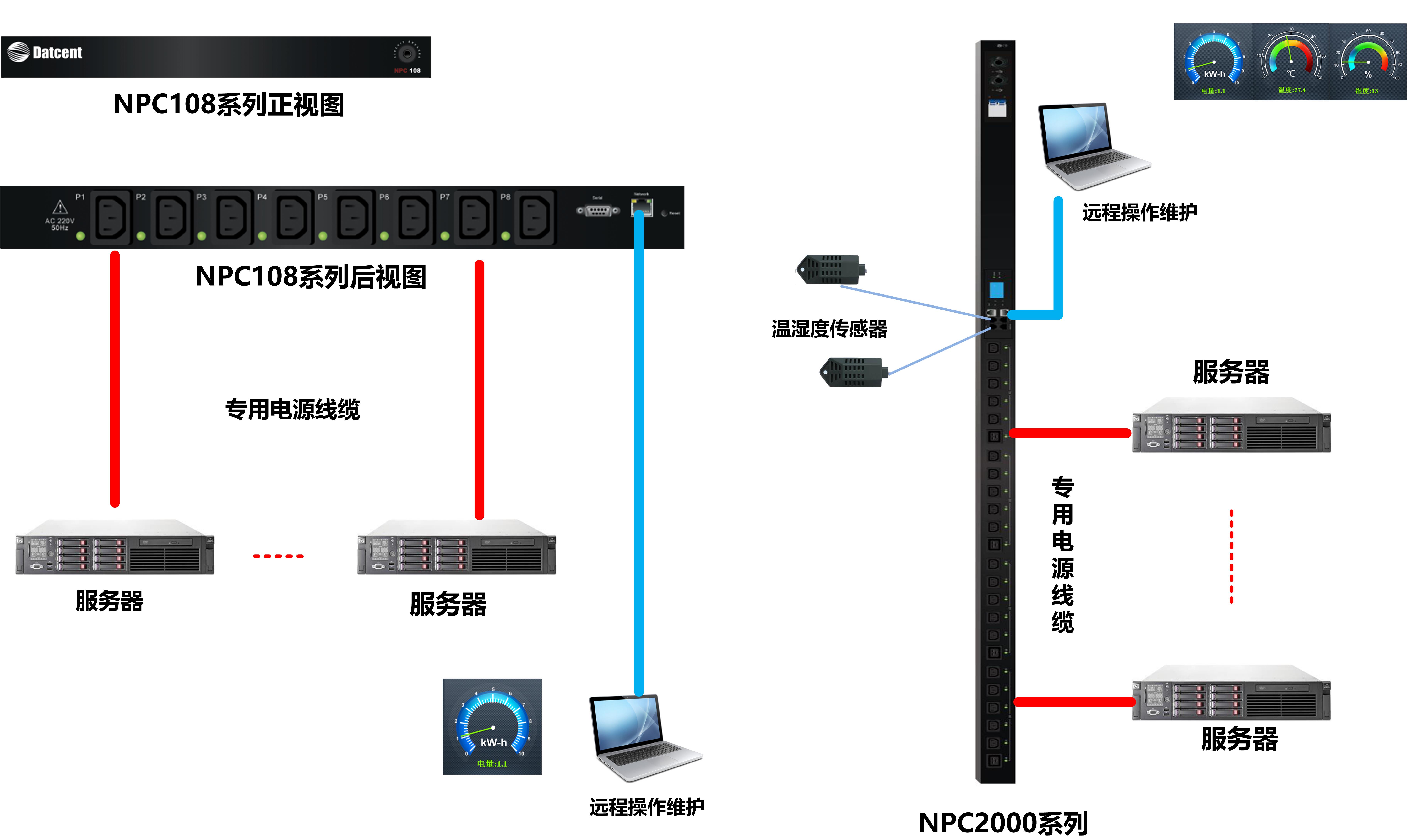 NPC系列智能機架PDU,集電源分配、用電計量、遠程電源控制及IT微環(huán)境監(jiān)測于一體,是專為數(shù)據(jù)中心量身打造的機架電源管理設備。NPC系列產(chǎn)品支持PDU總電流與總功率監(jiān)測、PDU總耗電計量、端口電流與功率監(jiān)測、端口耗電計量、端口電源控制(開、關、重啟)操作、溫濕度環(huán)境監(jiān)測。NPC系列產(chǎn)品支持IP網(wǎng)絡連接,并可接入DSVCenter和 DCLIVE集中管理軟件,進行數(shù)據(jù)中心機架電源集中化管理和數(shù)據(jù)中心能耗管理。NPC系列產(chǎn)品提供1U、2U、0U設計,用戶可根據(jù)機架設備密度選擇合適的型號。