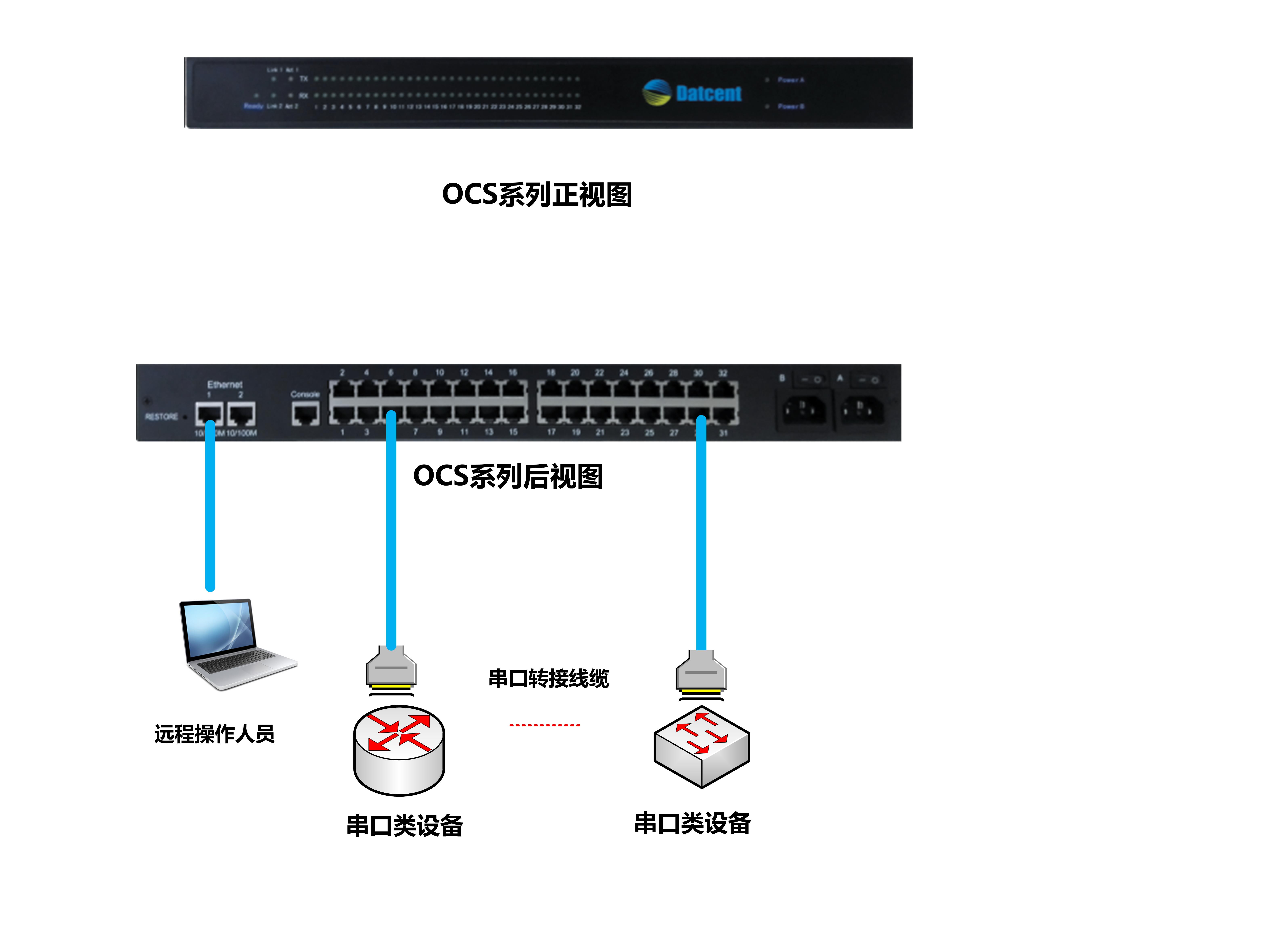 | OCS2032DDC | 串口控制服務(wù)器,32端口,2×10/100M以太網(wǎng)口,雙-48V直流電源模塊 |