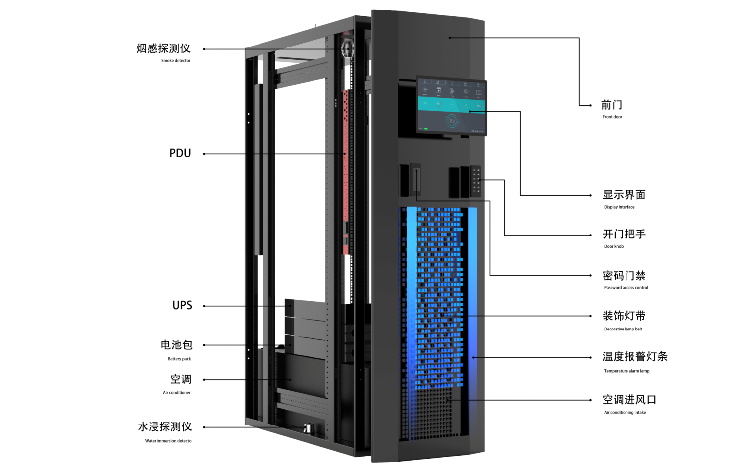 機(jī)柜可確保停電、空調(diào)停機(jī)溫度急升、應(yīng)急消防情況下,自動(dòng)彈開機(jī)柜門,采取自然散熱模式。